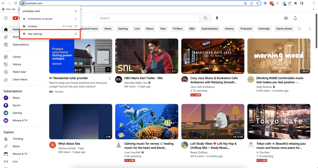 The first step is to go to the website you want to block. In my case, this is Youtube.